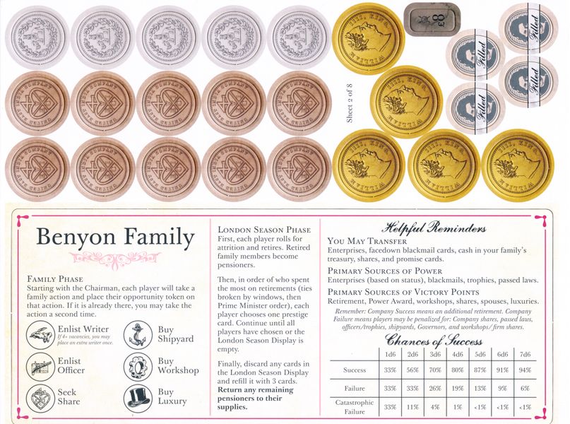 В течение игры каждый раз, когда члены семьи смогут уйти на пенсию со своих должностей в компании, у них будет возможность основать имения. Однако довольно интересным и важным пунктом является тот, что игроки не будут иметь полный контроль над тем, когда именно будут происходить эти события. Иногда придется одалживать деньги у других игроков, чтобы лучше использовать шанс на выход на пенсию. Кроме того, участники также смогут получить победные баллы на соревновании за престиж и завоевание фешенебельной собственности в Лондонском сезоне.