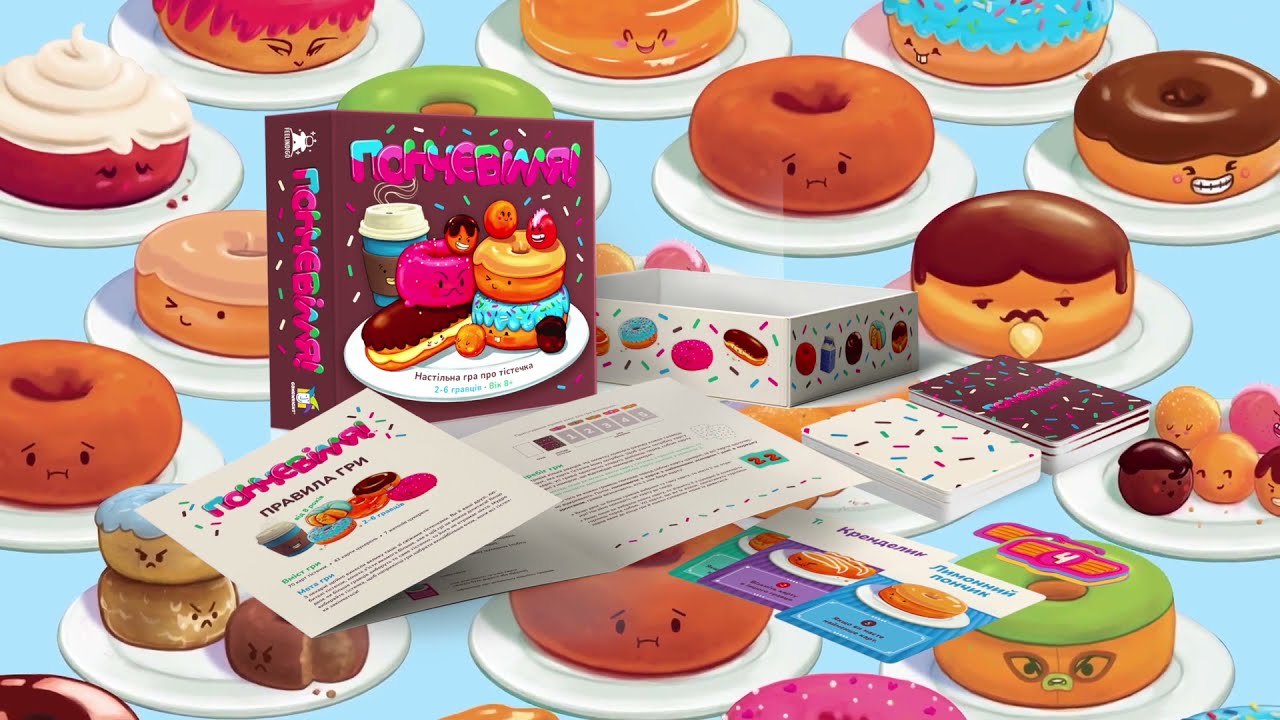 Таким образом и будет проходить игра, участники будут выбирать себе пончики, собирать себе наборы и получать победные баллы, пока колода со сладостями не закончится, после этого наступает этап подсчета победных баллов. Каждая карта с пончиком или пирожным приносит разное количество баллов, а некоторые комбинации будут приносить дополнительные бонусы и эффекты, поэтому небольшая доля стратегии все же вам понадобится!